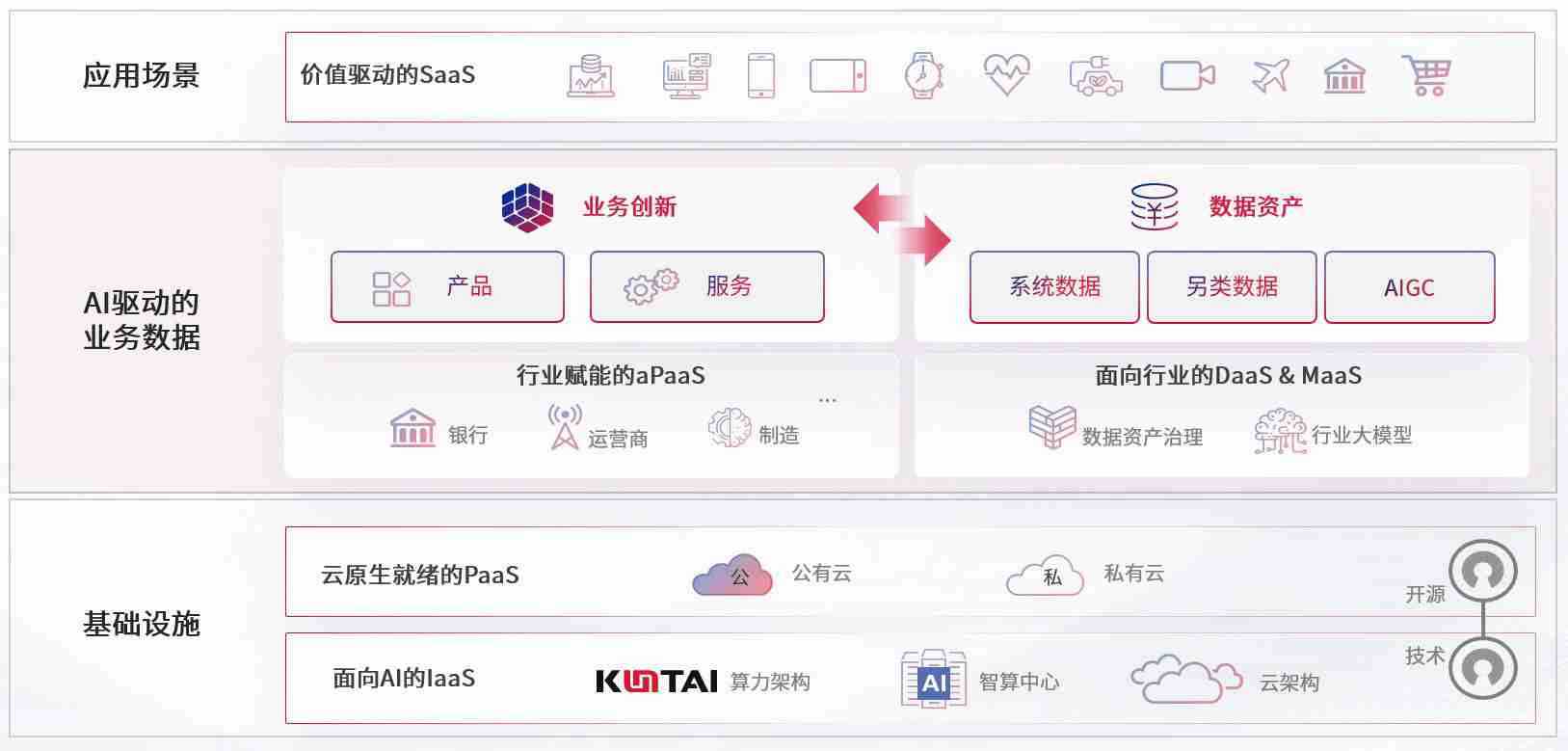 数字时代,,,,围绕企业数字化转型的关键要素,,,Z6尊龙时凯数码开创性的提出数云融合战略和技术体系框架,,,着力在云原生、、、数字原生、、、、AI原生和信创产业上架构产品和服务能力,,,为处在不同数字化转型阶段的快消零售、、、、汽车、、、金融、、医疗、、政企、、、教育、、、、运营商等行业客户提供泛在的敏捷IT能力和融合的数据驱动能力,,,构建跨界融合创新的数字业务场景和新业务模式,,,,助力企业级客户建立面向未来的核心能力和竞争优势,,,全面推动社会的数字化、、智能化转型升级。。