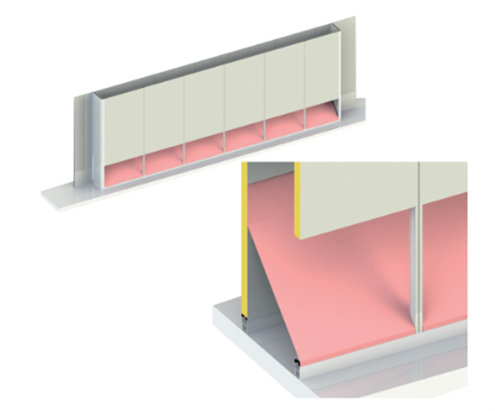 当洁净区不设高架地板,但又有高回风量要求时,可采用此回风方式,由手工夹芯板围成回风夹道,下设一体式导流板,增加美观度的同时也满足高回风量的需求。。