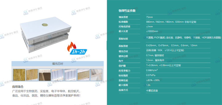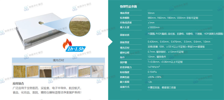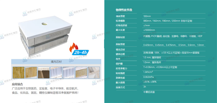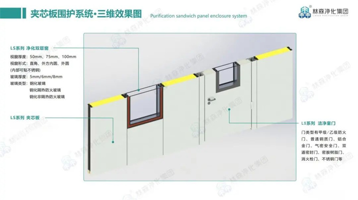 LS系列夹芯板围护系列产品,,板材为三明治夹芯结构,,,板与板之间可采用多种铝合金连接,,并搭配LS系列门窗系统,,,防火时间可达1小时以上,,,可满足各种类型洁净室需求。。。。