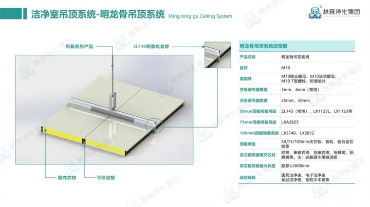 LS系列明龙骨吊顶系统适用于1000级以下的洁净室,,,,板材可选用多种夹芯板。。。。