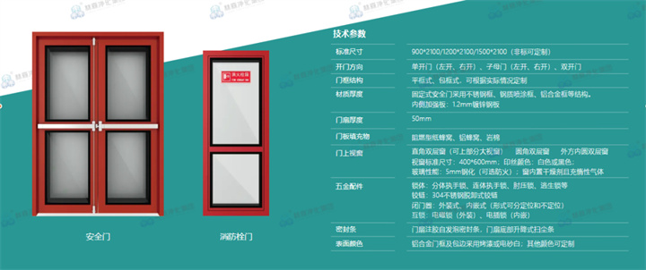 安全洁净门可根据需求配置防火玻璃视窗。。。适用于消防通道、、、电梯厅、、、走廊区的防火分隔。。