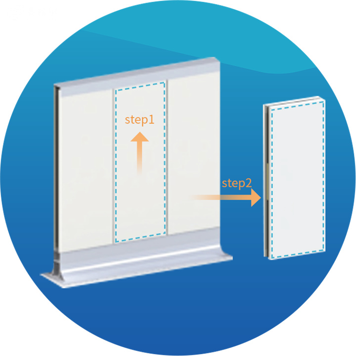 两长边镀锌钢带封边,,内部填充芯材,,,,通过高速连续自动化成型机加温、、加压复合、、、修编、、开槽、、下料而成型的新一代建筑装潢板材